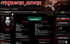 Crimson Moon è un gioco di simulazione che porta ogni utente a vestire i panni di un vampiro, di un lupo mannaro o di un ibrido. Si devono risolvere missioni e accumulare punti esperienza per diventare così il giocatore più forte.